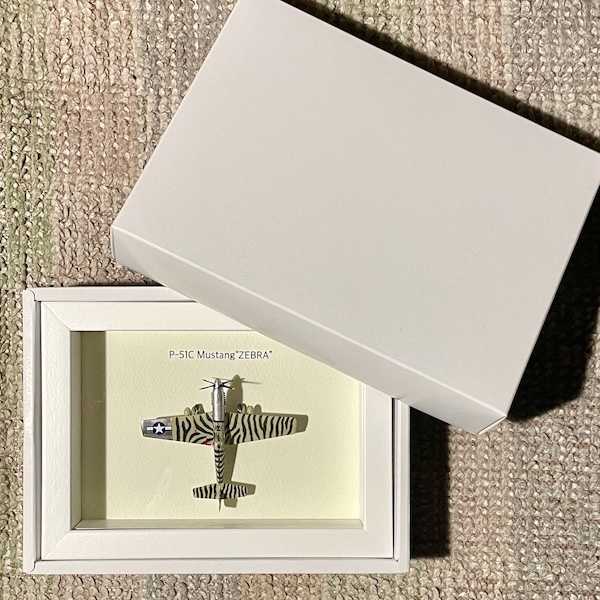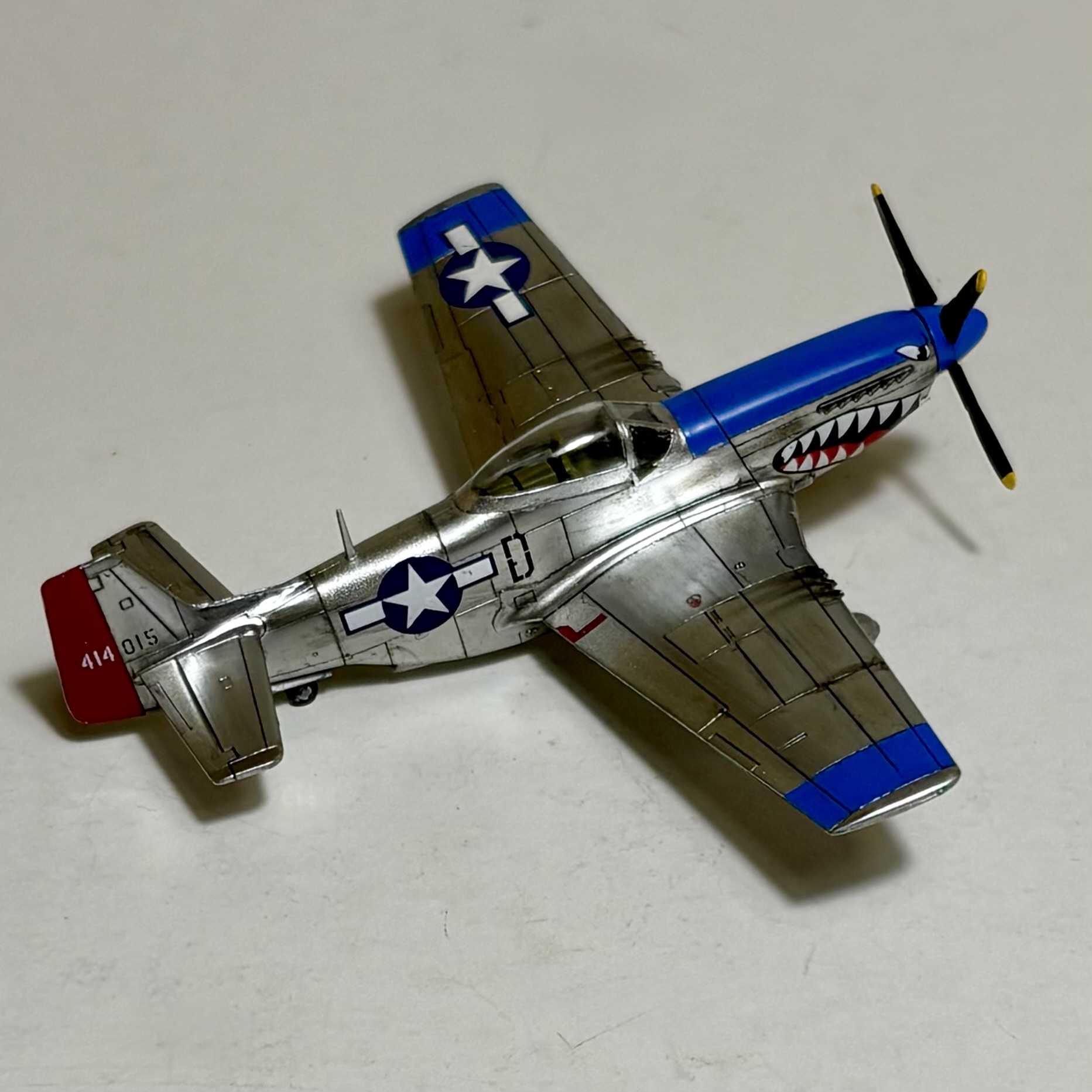 オークションにP-51Dムスタングを出品しました。キットはSWEET製1/144 P-51D MUSTANGです。マーキングは寄せ集めのデカールを貼ってますので“架空スコードロン”で実在しない所属部隊です。どうしてもシャークマウスのデカールを使いたかったのです;汗。例によって格納庫(収納ボックス)付きで取り出し可能です。格納庫から出して愛でていただけますwww配送に関して心配なのが輸送中に壊れないか?特にランディングギア(着陸装置・脚)や増槽(燃料タンク)、プロペラなど壊れやすい部品の保護です。自分なりの解決方法としてエアクッションで機体を挟んで宙に浮かして壊れやすい部品を底面などにくっつけないとゆう事。実際この方法で格納庫を振ってみても機体はビクともしませんでした。宜しければオークションページをご覧ください。P-51D タイガーシャークマイオークションページ