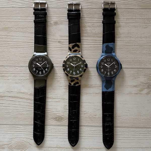 チープカシオに色々と塗装してオークションに出していたのですが、ほぼ全部リニューアルして再出品しました。バンドをオリジナルのラバーバンドから革バンドに換装していたのですが、革バンドの一部にも塗装を施しました。洋上迷彩のチプカシはオリジナルのラバーバンドに塗装していたのですが、これも革バンドに換装しました。またNATO迷彩に塗装してあったチプカシはオリーブドラブに塗り替えてみました。更に小ぶりのチプカシのバンドも一部塗装し直しました。デジタル時計は本体を塗り替えて、グレー一色にしウェザリングしてみました。ただ、このデジタル時計、宇宙船などのイメージでウェザリングをしたのですが、ちょっとやり過ぎて汚れ過ぎたかも;汗。オークション期限が来て売れなかったら少しウェザリングを落とそうかと、、、。宜しければオークションページをご覧ください。カシオスタンダードドラブカシオスタンダード洋上迷彩チープカシオサファリカシオスタンダードサファリポップカシオスタンダードグレー05マイオークションページ