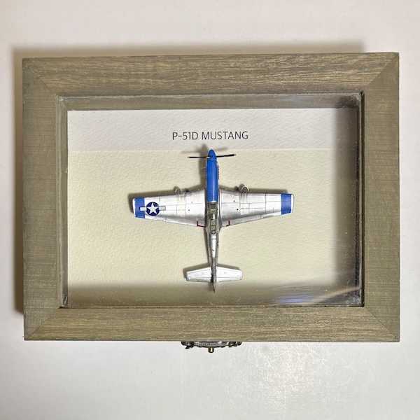 先日オークションに出品しました「P-51Dタイガーシャーク」が早速落札されました。感謝です。この手のプラモアート(自分なりにプラモデル作品をこのように呼んでいます)で落札されるのは久しぶりです。以前落札されて発送したプラモアートのほとんどの機体が額に固定されていたのに対し、今回のP-51Dは格納庫(収納ケース)には固定されず取り出せる為、輸送の際の破損が心配です。当然輸送中に動かないようにエアクッションで固定し、ランディングギアなど壊れやすい部品が底面に着かないよう機体を宙に浮かすように工夫しての発送です。あとは破損なしに無事届くように祈ります。