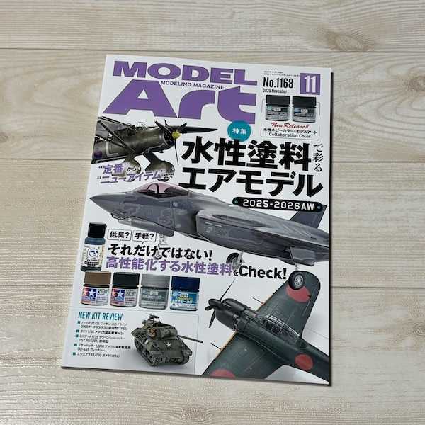 「モデルアート」この雑誌もだいぶ前(数十年前?)によく購読していました。当時はどんな内容だったかな~、プラモデルに関した記事だったのは間違いないのですがスケールモデルの記事が多かったような気が、、、。飛行機のプラモデルの記事が多かったのでよく読んでいたような気が、、、。このモデルアートか、同時によく読んでた「航空ファン」か定かではないのですが「ソリッドモデル」とゆうページがあり、なんと木で作った模型飛行機の読者からの投稿コーナーがありました。プラモデルしか知らない私がなんと木から削り出した、しかも精巧な模型があったとは驚くばかりでした。あれ図面を起こすのか?塗装も素晴らしかったと思いますがピカピカに艶があったような気が、、、多分木材用の塗料だったのかな?ニス塗ったのかな?キャノピーが透明じゃなかったりしたな~。プラモデルが登場する前はあの田宮も木製モデルを販売していたとか。自分でも適当な木と適当なスケールでB-17らしき物を作ってみましたが、あまりにもひどい出来だったので途中でやめました;汗。たぶん、このモデルアート誌だったと思うのですがやはり読者の制作したプラモデル(ほとんど飛行機モデルだと思いました)の投稿があり、それまで見たことも無かった外国製のプラモデルなんかが載っててモノグラムの1/48のキットなんかは憧れましたね~。今回購入したMODEL Art誌水性塗料の特集とゆうことで買ってみました。さて本の感想は、、、広告のプラモデルの最近の価格がビックリするほど高い!という事ですかね~wwwMODEL Art (モデル アート) 2025年 11月号 [雑誌]