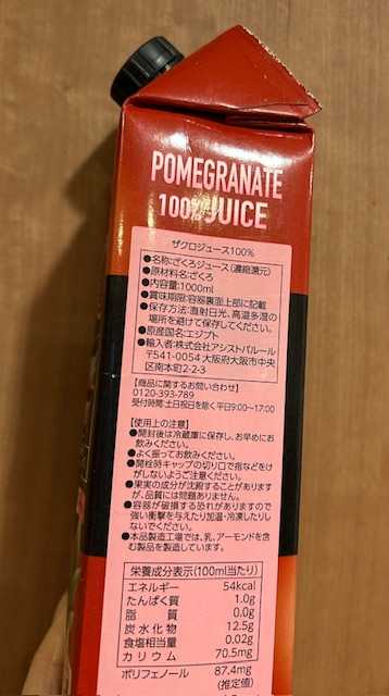 ザクロ果汁100%ジュースが1本あたり167円は安い。