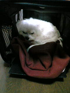 最近、私が忙しくて、かまってあげてないので、かなりいじけてるマルチーズのうるちゃん。。雨でお散歩にもいけてないし、いたずらしては怒られ・・・ますます孤独を味わってます。寒くもないのにキャリーバッグの中に入って、憂愁をたたえた目でこちらを見てます。大好きなおにいちゃまはお勉強して遊んでくれないし・・・お母たまは、どこかへおでかけして夜まで帰ってこないし・・・小さいお兄ちゃまは学校から帰ってきたら寝ちゃうし・・・お父たまは帰ってきてもテレビばっか・・・・うるって王様って意味なのよん!!王様を孤独にさせるってなんちゅ~~家族や!もう怒ったもんね!おやつでごまかそうたって尻尾なんて振ってやんないから!それでもササミ巻きおいもに弱いうるちゃんでした・・・・