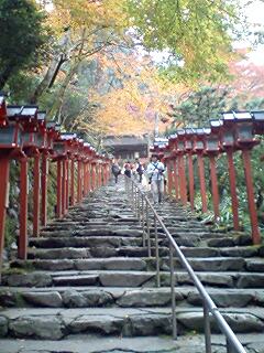 先日、京都に行ってきました♪京都は本当に美しい♪美味しい♪和む♪まず、行ったのは北野天満宮!!子供たちの学業向上にと時々訪れるところです。でも、ここらへんは全然紅葉ってなかった。。あったかかったしね。。さて、その次、楽しみの京都吉兆へ♪主人の勤続25周年記念で、かなり楽しみにしてました。そうそう毎回来れるところでもないですし、個室だったので、シャメとっちゃいました^^;; シャメは全部ではありませんが、すべてに手が込んでて、ほんと美味しかった♪たまに本物の味を食べるというのは良いことですね。。お腹もだけど心もいっぱいになります。特に主婦業してると、手を抜く業は磨かれますが、なかなか技術アップというのは・・・・限られた範囲だけですしね^^;;上げ膳据え膳して頂くならなんでも嬉しいんですけど、本物はやはり良い!すべてに素材のプロさ、料理のプロさが伝わってきました。。うちのだんな様、25年ご苦労様です。。ますます働いてください(あははのは^^ )帰ってから、よく吉兆を放送してるテレビを見ます。。タイムリーだわ♪さてその次に向かったのが私の希望の鞍馬♪レイキ発祥の地でもあり、今がタイムリーの紅葉♪満腹のお腹をひきずり、ひきずり・・・・^^;; 出町柳駅へ。。車は出町柳の駐車場にとめて、叡山電車にのります。たぶん初めて乗ったと思うのですが、ワンマン電車♪1番前に立って景色と運転手さんの運転を楽しみました。(ちなみに旦那さんは座ってました^^;;) もみじのトンネル~~~!!キレイでした♪そして鞍馬へ、つづく・・・・
