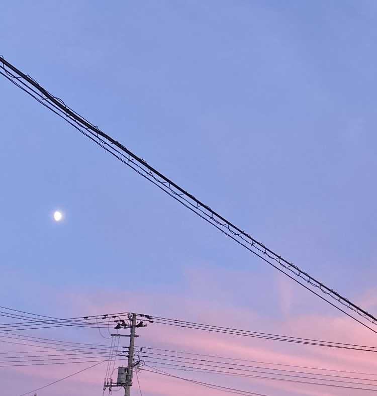 昨日の夕焼けは、水色の空に淡いピンクの雲が薄っすらと広がり、小さな白い月が輝いていて綺麗でした。素敵な空でした…