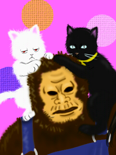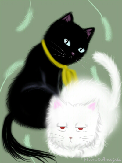 ジャンプの感想はまた後ほど今日は仕事から帰って来てからイラストをがしがし描いてました。贈り物用に1枚。先様には先ほどお届けにあがったのであちらのアップを待ってこちらでも公開したいと思います。・・・・・・・で、もう今日は力尽きた~~~~~~と思ったんですが何となく描きたくなった1枚主線なし、アタリなしでブラシツールでふわふわ~~~~っと描きました肉球トリオこの間はゴリにゃんこだったわけですがやはり肉球同士で仲良くして頂きたいなぁとまぁ、この3匹でじゃれたら、にゃんこ2匹は確実に命がヤバいですが(笑)・・・・・・・・・あ、うっかり潰されちゃうかもってことで今夜はダンナ様の帰宅が遅いのでジャンプの感想書けたらアップします。明日は祭りに行ったりで書けるかどうか分からないんで。
