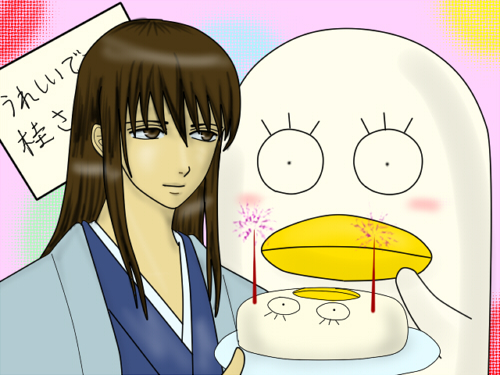 マジで心配になります。10万アクセスのお祝いに、またイラストを頂きました!きっと、向こう10年分の幸せが前倒しで来てるに違いないよ。これが過ぎたら冬の時代がやって来るに違いないよ。幸せ過ぎて怖いヨー!!でも、それでも良い・・・・・・てんぽ~をもっと甘やかしてェェェェ!!!ハァハァハァ・・・・・・すみません、取り乱してしまいました。あんまり嬉しくて。さて、そろそろ正気に戻ります。きちんとご紹介せねば。今日ご紹介しますのはアニメ手芸人形~黒執事・コードギアス/奈々里様から頂きました。桂さんとエリザベス こちらはてんぽ~が頂いたものですお持ち帰りは厳禁です~麗しい桂さんとエリザベス~~~~~~!!!奈々里様、ありがとうございます!!はんなり?しっとり?何と表現したら良いんでしょう。えもいわれぬ表情が堪りません普段、銀魂のイラストは描かれない奈々里様ですがこんなに美しい桂さんを描かれるなんて反則ですよ~~~♪もっと描いて下さい!もっと拝見したいです!本当にありがとうございました!あ~~~~もうね頂き物に囲まれた幸せな毎日で~~~ついついリクエスト企画の手が止まるぅ~~~はっ!Σ( ̄□ ̄;)これではマズイっすね!?今日の夕方はダンナからパソコンを強奪する事に成功しましてただ今、拍手からリクエスト頂いたイラストを仕掛かり中・・・出来たら明日、公開したいと思います。がんばるんばー!!