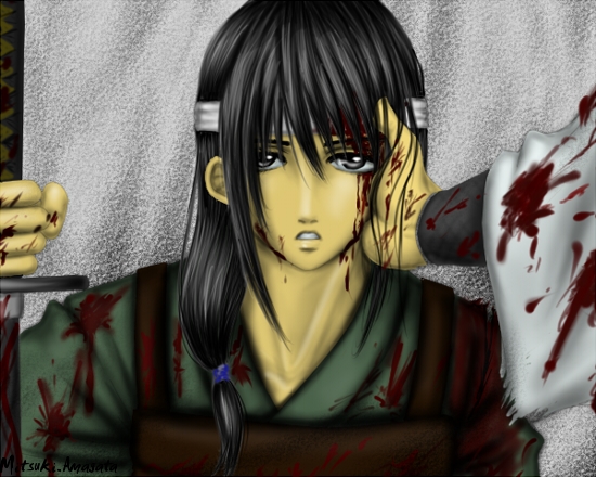 観た?まだ観てない?てんぽ~は観ましたよ~~~~~~~「白夜叉降誕」ふふふふふふふふ・・・・腐まだ観てない方もいらっしゃると思うので感想は明日~~~~って言ってもだね~~~~~これだけは言っておきたいっ!!石田彰さんの喘ぎ声はヤバイ!!(ちょ・・・それェ?)先週のアニメ銀魂「銀魂カウントダウンTV」でも放映されたジャンプアニメツアーの映像ですよっ!!テレビで見てた時は1号2号が一緒だったんで普通に「ふんふん」ってな感じで観てたんですよね~一応親としての体面もあるっつーかかぶりつきでは観られないじゃないですかぁえ?もう遅い?・・・それは言わんでくれ・・・・・・分かってるんだ自分でも(遠い目)まぁ、そういう気を使う事もなかった今日はイヤホン装着して気合い入れまくりで観ましたよ~~~~したらば・・・・・・・ですよ・・・・・・・・いかん・・・・・・・トランス状態になる・・・・・・・・・・・・・・いや本当マジで来ますわコレさすが石田さん何て言ったら良いんでしょうねぇ息がマジ切れてる時特有の、喉が震える呼吸音・・・って言えば分かって頂けますかねテレビで観てた時は音が散ってしまって分かりにくかったんですがコレを耳元でじかに聞いて御覧なさいなヤバイから・・・・・・・・・・極限状態のエロティシズムっていうかなー圧倒的な力で踏みにじられそうな状況に必死に抗おうとする美しさって言いますかねこう・・・・・・・・なんていうか無理矢理散らしたくなるような悲荘感と背中合わせのエロス・・・・・って言いたい・・・・・・・・短かったけど堪能致しましたっ!!そんなこんなで今日のために用意してた1枚流血注意(つっても苦手なんであんまり派手じゃないですが)ただ一つ確かなもの ・・・・・・・・お互いにね・・・・・・・って事で描いてて痛そうだった・・・・・・・やっぱり流血表現は苦手です今日の昼の日記に励ましのコメントありがとうございましたもう・・・・・・・・・ホンットすみませんでしたァァァ!!(ジャンピング土下座)時々・・・・いやいや・・・度々後ろ向きになるヘタレで御免なさい!!・・・そうですよね・・・・・・こんな腐れサイトに訪問して下さるだけでもありがたい事です心を入れ替えてリクエスト企画もやらせて頂きます!!もう何でもやります(ちょ・・・マジでか)やらせて頂きます!!拍手コメントからでもここのコメント欄でも何かてんぽ~にやらせてやるぜ!!・・・って方はお書き下さいませ!!見捨てないでェェェェ(←ちょ・・・・・ウザッ!!)拍手コメントありがとうございました陸奥子様オリ様MIMI様(私信です反転下さい→知らせて下さってありがとうございましたまな様のっち様まちゅあ様きりこ様はるはる様→後でこっそり教えに行くアルエリー様透川黒兎様→励ましありがとうございました!リクエスト企画やりますよ~椎野あたる様→勿論です!!凛々しい真面目な桂さんですね?了解しましたまだお様→あわわ・・BL苦手なのにわざわざお運びいただいているなんて・・・ありがとうございます。4コマ・・・・お恥ずかしい出来で・・・(照れ)電ハムちゃん→ま・・・ままま・・・漫画・・・っ!?もう何年もまともに描いてないよぅ。でも頑張る~
