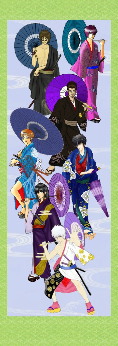 新しい枕を買ったら高さが合わなくて朝から酷い肩凝りに悩まされてるてんぽ~です。真ん中が凹んでいて、中に柔らかくて小さいパイプが入っている枕。昨夜寝る前にガサガサ~っと中身を出して低くしたんですけどもっと低くしないと駄目みたい。さっきまたガサガサ~っと中身を出しました。今夜はぐっすり眠れると良いなぁ・・・・・・昨夜の眠りが浅かったせいか、昼御飯食べて2号の宿題を見てやってたら強烈な睡魔に襲われて珍しく1時間半も昼寝しちまいました。・・・・・・え?小三の勉強で頭使ったんだろうって?・・・・・・うーん・・・否定出来ない自分が情けない。脳ミソからっからだからね、表面の皺がすっかり無くなっているからね顔の皺と反比例して。・・・・・・って放っとけやァァァ!なんて一人でノリ突っ込みしても虚しいっすね。・・・・・・本題・・・・・・行きましょう。我が家の床の間には今、竹林に虎の掛け軸が掛かってるんですが・・・・・・マジでこの掛け軸に替えたいです!!仲良しブロガーはるはるさんが作って下さいました!白浪七人男 揃い踏み うーん・・・・・・素晴らしい!!何が素晴らしいって豪華な顔ぶれは勿論これを掛け軸に・・・っていう発想が凄い!はるはるさんありがとうございました!!以前電脳ハムスター様はるはる様まるでだめなおかあさん様みゅたろう様そして不肖てんぽ~でコラボった白浪五人男そこに、はるはるさんとまだおさんがコラボった高杉が加わりそしたら坂本っさんも外せないよね?てんぽ~・・・・・・拙い腕前ながら描かせて頂きました。思えば、はるはるさんと色塗りコラボをした際に“歌舞伎の白浪五人男みたいね”・・・と言う言葉が切っ掛けでした。何気ない一言から、よもやここまで進化するとは!これもひとえに皆さんの銀魂愛の賜物。そして、加工合成という手間のかかる作業をやって下さったはるはるさんの人徳ですね!素敵な宝物をありがとうございました!!これからも仲良くして下さいね!!拍手コメントありがとうございましたオリ様MIMI様黒兎様陸奥子様のっち様みかげ様かな様いちこ様みゅたろう様無記名の方々もコメントありがとうございました・・・あ、ダンナが風呂から出そう・・・・皆さまのサイトへは携帯で後ほどお邪魔します~~