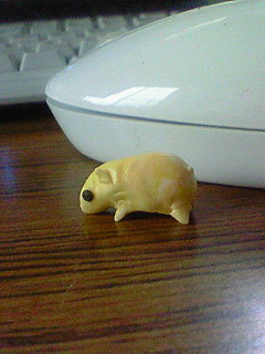 小さい生き物はみんな可愛いって思ってましたがマジで可愛いっすね・・・・・・ハムスター餌をね、せっせと運ぶんですよ、お気に入りの場所にま、他の動物もよくやることなんですが・・・・・・我が家のきんちゃんのお気に入りは”3階”つか屋根裏?ケージの階段上がった一番てっぺんの透き通ったプラスチック屋根の下にある、ほんのちょびっとのスペースが好きみたい狭くて落ち着くんですかねぇ。朝一番に様子見に行った時も仕事から帰宅して覗いた時も、そこでもぞもぞしてました。で、何も入れておかなかったそこのスペースにいつの間にか餌やら下に敷いていたパインチップヤらを持ち込んでるんですよ。さっき餌を手であげたら、口に咥えて運んでました。でもねぇ・・・・・取られないように隠すってんなら分かるんですけど丸見えですから~~~~~~(笑)あんな小っちゃい脳みそですからね・・・そのおバカさん加減がめっさラブリー♪眺めていて癒されますね~~~~~~うふふ昨日の2号のおやつは”ねりキャンランド”色つきのソフトキャンディが5種類くらい入っていて自分で好きな形に作って遊んで食べるってお菓子なんですが「お母さんの分残しといたから~~~何か作って食べてね♪」夕飯のあと、2号がくれたので早速ねりねり~~~~~~~こんなん作ってみましたきんちゃん食べちゃうよ~~~~ 隣にあるのはマウスです。大きさは小指の先ほどなんですが・・・・・ハムスターに見えます?食べるの可哀そうにならなかったかって?勿論美味しく頂きました~~~~~~~