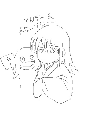 あと2時間後から町内会の会合があるんですよ~~~毎年開催される公民館のイベントで模擬店やるもんでその打ち合わせです。昨年は綿菓子コーナーの担当でひがな一日綿菓子作ってたんだけど今年の担当は何になるかな~~~程々に忙しいのが良いなぁ・・・暇だと時間が進まなくて飽きるし。綿菓子作りは楽しいんだけどねぇ砂糖まみれになるのが困る。髪やらジャケットやら白い綿菓子がいっぱい付いてべったべたになるのがね~~~さ、夕飯作って行ってきます。今日のいたずら描きま、何となくの一枚