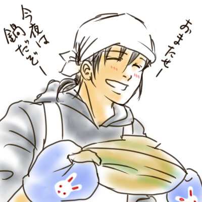 寒いヨ~~~~~~~~雪が降らない暖かい地域だけど寒いモンはやっぱ寒い!!寒~~~~~い冬の週末はやっぱり体が芯から温まる鍋よねっ!代わり映えのしない寄せ鍋だけど旨いモンは旨いんだ!!・・・・・・ただメニューを考えるのが面倒なだけだろうって?・・・・・・・・・・・・・・・・・・・・・・・はい、そうです・・・・・鍋は簡単だから次は1号に作って貰おうかな~~~とか目論んでるてんぽ~料理が出来る男って素敵よねてゆか、男子も得意料理の一つや二つないとね~~~~・・・・・んな事をつらつらと考えながら今日のいたずら描きおかんな兄さんにこ目のお兄さんは大好きですwwwさて・・・・・・支度するかなーーーーお礼は10種ランダム表示(既出イラストですが)←ランキング参加中 クリックして下さると大変嬉しいです♪