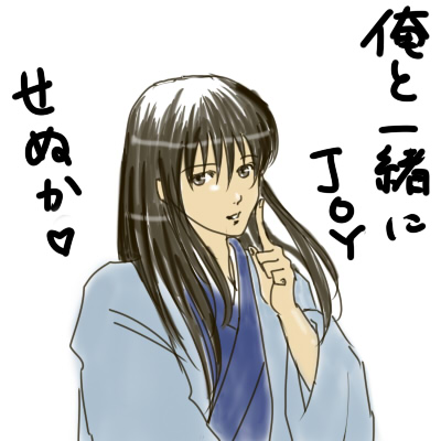 続いちゃってるよ~~~~~このヤバいネタが!!5人の女性と各10分1人のマダオと20分なんやかんやしちゃった銀さんその6人とめでたく同棲を始めたはいいものの~~~~あ~~~やっぱきたかコレデートでドンつか、みんな銀さんの事めっさ好きだよね?どんだけ慕われてんの?ってくらい何だかんだと皆自慢しまくりじゃん銀さん本人は体よく全員と手を切るつもりだったってのにさ~む~~ん・・・一番寛いでるのがマダオの小屋ってどーゆーやっぱそういう趣味なんだろオイあ~~~全蔵さんってば、面白がってるな絶対彼女たちが鉢合わせしてビビってる銀さんの脇でニヤリとしてる~そんなにヒマなのか、元御庭番!!ダ○チワイフきたコレ銀さんの顔ってこう見えるってことだよねwwwデート場所はプラネタリウム・・・・・暗くて姿がよく見えないから?なら映画とかでも良いのに因みにてんぽ~はプラネタリウムデートの方が好きだ(←要らねェよ、そんな情報)おぉ・・・イボネタか・・・と思ったら・・・ちょ・・・・・・・・某都知事に対してなんて挑戦的な台詞マジでアニメ再開ぶっ飛ぶぅぅぅぅや~~~め~~~てェェェェェ!!ここは一つヅラさんにお説教を・・・・・・・何をやっているのだ銀時六股だと?恥を知れ恥を!!このままではアニメ再開など露と消えてしまうではないか俺を含め、出演者みな再開を心待ちに準備万端整え出番を今か今かと待ちわびておるというのにまぁ、こうなってしまったのは仕方ないアニメ再開は貴様抜きで始めるから、せいぜい幸せになるが良いわ男子たるもの、女子(おなご)を泣かせるようなことをしてはならんぞ特にお登勢どのを泣かせるようなことは決して・・・・な(←年増未亡人好き)何コレ・・・って?だって~~~~~~ヅラさんが足りないんだも~~~んお礼は10種ランダム表示(既出イラストですが)←ランキング参加中 クリックして下さると大変嬉しいです♪
