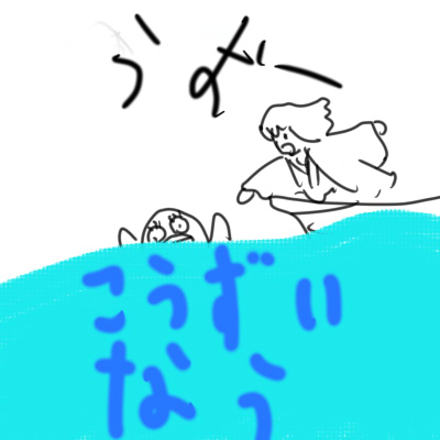 てゆーか、二人でネタ絵っぽい物を(笑)ネタ絵っていうか いたずら描きなんだけどね~~~さらさら~~~~~っと画面に水色を描き始めた2号なんじゃこりゃ?「好きに描いて良いよ~~お母さん」・・ってどうしろっていうんじゃァァァァしかし・・・しかしだこのまま「無理ィィィ」を言うのはてんぽ~の本意ではないネタを振られたら受けて立たねばなるまいて受けて立ったいたずら描きが・・・・・・・・ ・・・・洪水なうおぼれたエリザベスを救出に向かうヅラさんやるときゃやるヅラさんだけど大事な所でコケるのもヅラさんホラ、ゴミ出しに行って階段から転げ落ちるとかねなので当然のことながら・・・・・・ミイラ取りがミイラ状態・・・・とここで銀魂1、2を争う男前なエリザベスめでたくヅラさんを救出なう・・・・っていう・・・ま、そんなオチお粗末様でござんしたっさて・・・・・・これからきんちゃんのケージ掃除してこなきゃやってきま~~~すお礼は10種ランダム表示(既出イラストですが)←ランキング参加中 クリックして下さると大変嬉しいです♪