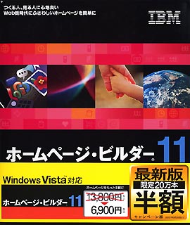 私はホームページの作成にホームページビルダーを使っています。その他のソフトも一通り使う機会がありましたが、ビルダーが使いやすいですね。IBMホームページ・ビルダー11 通常版(半額キャンペーン版)6900yenレビュー平均:★★★★★日本IBMホームページ・ビルダー11 バージョンアップ5340yenレビュー平均:★★★★★IBMホームページ・ビルダー11 バージョンアップ版 ガイドブック付き(半額キャンペーン版)4150yenレビュー平均:★★★★★できるホームページ・ビルダー11(イレブン)1575yenレビュー平均:★★★★※紹介している商品はあまり考えて載せていません。バージョンアップ版や通常版がまざっていますので、購入の際はお気をつけください。- PutiRaku -メンテナンスがありましたので、テスト書き込みを兼ねています。