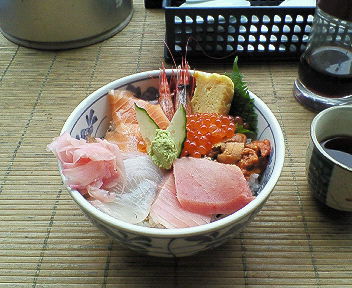 後輩オススメの、場外の丼物屋さんに行って、海鮮丼を注文しました。