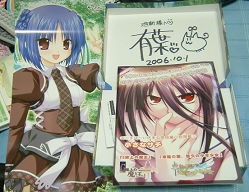 9:25 小雨の中会場前到着。すでに店前の道はみ出て道路にまで人が。購入者対象で1ドリンク代かかるので、そこまで人いないだろと思ってた自分が甘かった。9:30頃にあかべぇさんのスッタフが出てき、説明と整理券配布を。サイン会上限は70から60に変更になったようですが、なんとか48番をget。その場で53番まで配られてました。 集合時間11時直前から少し雨が強くなってきましたが、順次列整理して入場。ドリンクですが、こん僕のキャラ名で用意されていました。綾菜、あすか、真帆の三種。一番人気はあすか、つづいて真帆で、結構売れ残ってどなたか綾菜貰ってやってくださ~いって言われてた名ヒロイン哀。まぁ私もあすか派ですけどね♪ ちなみにるーすぼーいさんはあすか、柚木さんは綾菜を頼まれてました。-------で、トークスタートですが、時間の都合上有葉さんのサイン会とトーク同時進行とのことで有葉さんにはあまり話が聞けず残念でした。有葉さんに聞けたのは・・・ 大分出身。しいたけ馬鹿にしないでくださいっ三国志では関羽が好き。髭がいい!こん僕では、最初に志乃の制服をメインの制服としてデザインしたけど、もっとエロ可愛くということで今のに。とかまぁそんなこんなでサイン頂きました。パッケージにと聞いてたので中身は置いてきてたら(結構重いし・・・)サインは小冊子にと説明されて焦りましたが、パッケでも問題なく。っていうかDVDのレーベル面にしてもらってる兵もおられたような・・・ るーすぼーいさんとさんのトークの方ですが、るーすさんはこん僕ノータッチということで何か車輪の話の方が多かったような・・・一番筆が捗るのは寝起きとか 最近三国志プレイとか FF3は名作とか みなとソフトのG線上の魔王に関することも少し聞けたんですけど「内緒なんですけど・・・」って言われてたのでここでは書くの控えときます。そんなこんなでじゃんけん大会~ 有葉さんのサイン色紙3名、柚木さんのサイン色紙4名。私はいつも通り負けましたよええ。あと小冊子にるーすぼーいさんのサイン貰えるのが20名。・・・めずらしく勝てました なんか最近運をちまちまと小出しにしてる気がします・・・で、記念テレカ(パケ絵、1500円)なんですが15枚しかないってことで(ぇー)これも抽選です。・・・買えませんでしたつo;で、13時、予定より早く終了です。どうやら次の会場への移動時間の都合っぽでいす。サインの人数減ったのもその所為みたい。-------以下雑記9:15過ぎに出発。出発してすぐ小雨になってきたが速さ重視で傘はささず。9:25着整理券を貰ったあと、ゲマズの軒下でとらの開店を待つ。あぁGBAの電池残量がヤクいとらを物色してたら便意もよおしたので711・・・は使いにくいのでなんさん通りのJoshonでトイレ借りるゲマズとかフラついてたら集合時間11時近く。雨が強くなってきた。雨の中列整理、順次入場13時に終。やよい軒で昼食。カツ丼。らしんとかメロブとかザウルスとか+とか見て回るが、雨ってこともあって何も買わず帰宅。車輪初回中古万超えかよ・・・こん僕は4950ですかそうですか帰宅後はまたーりとサルファ、エヴァ終了、ついに殴りこみこん僕はすかルート終え綾奈に。Relict・・・カグヤエンドしかないのか?フラグミスか一週目強制か・・・わ、攻略サイト見つからないよっ