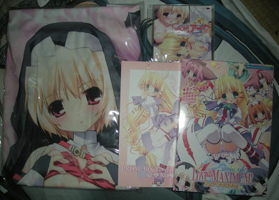 というわけでぱじゃまソフトさんのプリズム・アーク[AA]のファンディスク、プリズム・アーク らぶらぶマキシマム[AA]が1/25に発売になりました。で、ハイ、テレサの抱き枕カバー(+ミニゲーム)に釣られてオフィシャル通販で購入してしまいました。この抱き枕カバー、サイトでは片面しか公開されてませんでしたがちゃんと両面。裏の方はかなりの露出度です材質もいいポリエステルで流石、特典でなくセット販売扱いなだけはあります--------------ともあれゲームの方も早速インストールして少しだけはじめて見ましたが、フィーリア、本編のラストから始められるとなんか懐かしいというかなんというかプレイしたの約丸一年前ですからね…・・・って うわあああああ うわあああ …orzプレイ感想もそもうち書く…かも。===============================================================プリズム・アーク らぶらぶマキシマム[AA]