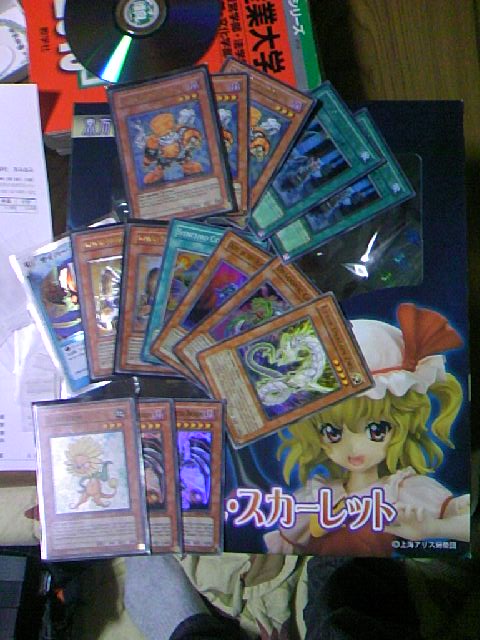 ソロモンよ私は帰ってきたー!!やっと期末考査が終わったー。最近レポートやら試験やらでホント何も出来なかった。でもそれももう終わり。というわけちょうど2ヶ月の長期休暇です。やたー。で、今日すべてに開放されたんでとりあえず四条川原町へ、東方のレミフラのストレージとかをとりあえず回収。あと買い逃しのコミックやら色々買いました。で、イエサブに立ち寄ったんですがイエサブ製のキャラスリのアウター140枚(70×2)500円を買ったんですが、なんとこれには当たりくじがついていてなんと当たっちゃいました。というわけでもう一個もらいました。125円で70枚うまー。サイズとしては柄つきのキャラスリアウター全く同じサイズで、柄つきのキャラスリアウターよりちょっと薄めです。自分としてはそこまでスリーブ厚くなくても良いので丁度いいです。大学の束縛から開放されたのでバイトを沢山入れようかな。休日増やしても暇になるだろうし、お金が入ったほうが活動しやすい。よっしゃ目指せ月12万!!さぁ春休みという名の金稼ぎの始まりだぁ!!