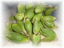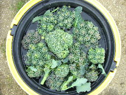 ブロッコリーもそろそろ終了間際です。野菜の中でも特に栄養価が高く、ガンの予防にもなるとか・・・ そんな、ブロッコリーですが夏~秋頃(?)虫退治が大変でした。何百匹・・かも?キャベツの苗を買ったつもりでしたが、中にブロッコリーが混ざってて、(だってそっくりやもん)植えるのが、早過ぎたのかも知れません。 そのせいか、毎日、苦手な虫との闘いになりました。以来、売っているブロッコリーは食べようと思いません。 (農家の方が手による、退治は出来ないと思うのですが・・・。)こうして、水浴するのは、念のため水死させます。こんな、ブロッコリーでも電子レンジで「チーン」とすれば 緑濃く、栄養分失わず・・・美味しく変身してくれます。