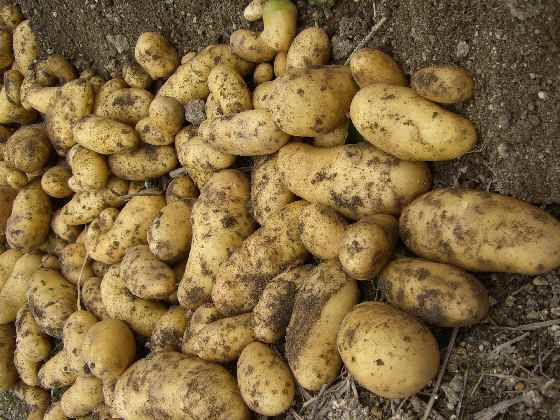 五個ほどのジャガイモを二つに切って植えましたが、不思議ですね。L、M、Sいろいろですが、こんなにたくさんに変身しました。 「食べなれた味が良い。」という外野席の要望に答え、メークインです。 やっぱり庶民の味がいいのですね。キューリ等夏野菜も採れだし、食卓に家庭菜園の作品が並ぶのは、レストランでは味わえない満足感があります。