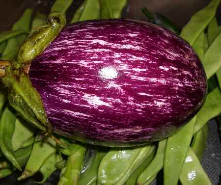 2種類めのナスが出来ました。カタカナの難しい名前です。どんなのが出来るのか始めて姿を見る時は驚きです。マリーゴールドも畑で見ると綺麗です。