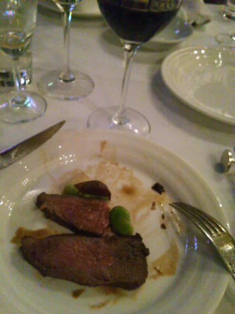 1ヶ月ぶりにワイン会に参加いたしました。気持ち予算オーバーですが、料理とワインの量を考えると仕方ないかな。今回はメーカーズディナーだったので生産者さんの説明があるワイン会でした。気楽な持ち寄りワイン会が好きですが、まあ、こういう集まりもたまには勉強になります。お肉がおいしかった。白ワインはすっきりとしていて飲みやすかったのですが私てきにはちょっと刺激がある感じだった。まろやかな飲み口で後味すっきりのほうがいいかな。赤ワインのほうがいい感じで軽やかだった。値段が手ごろなんでかって帰る人もいたらしい。事情があって早め(といっても終了時間)に帰った私は最後まで見て無かったけれど。