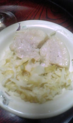 なんちゃってザワークラフトが少々酸味が強いけど、まあ雰囲気だけ。