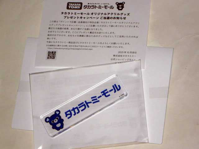 「タカラトミーモールオリジナル アクリルグッズ」当選