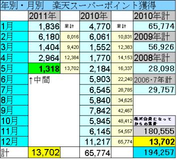 楽天スーパーポイント5月中間◆1318Pt ◆