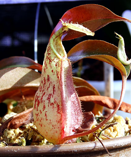 食虫植物ウツボカズラ(ネペンテス)が新芽を