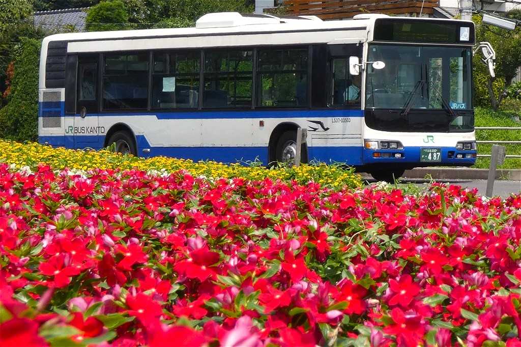 花壇の花とJRバス