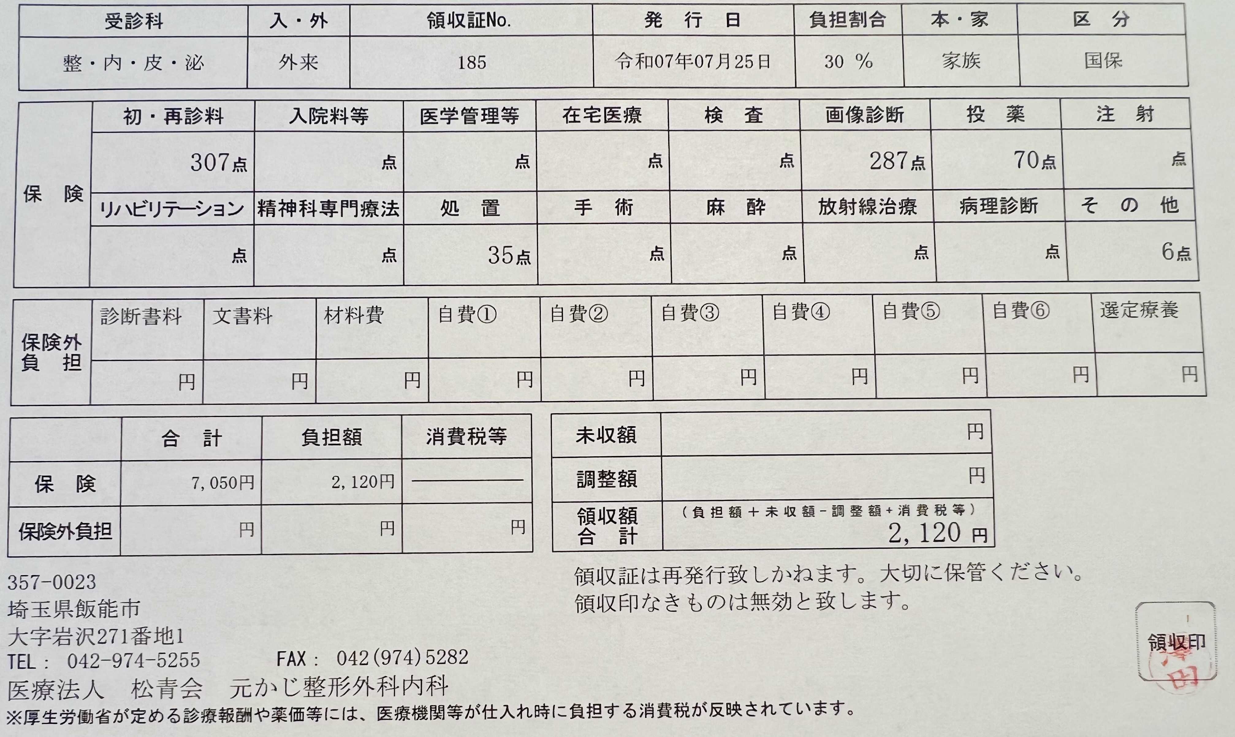 卓球の練習に行き、着替えてそのまま整形外科へ。 整形外科の夏季の…
