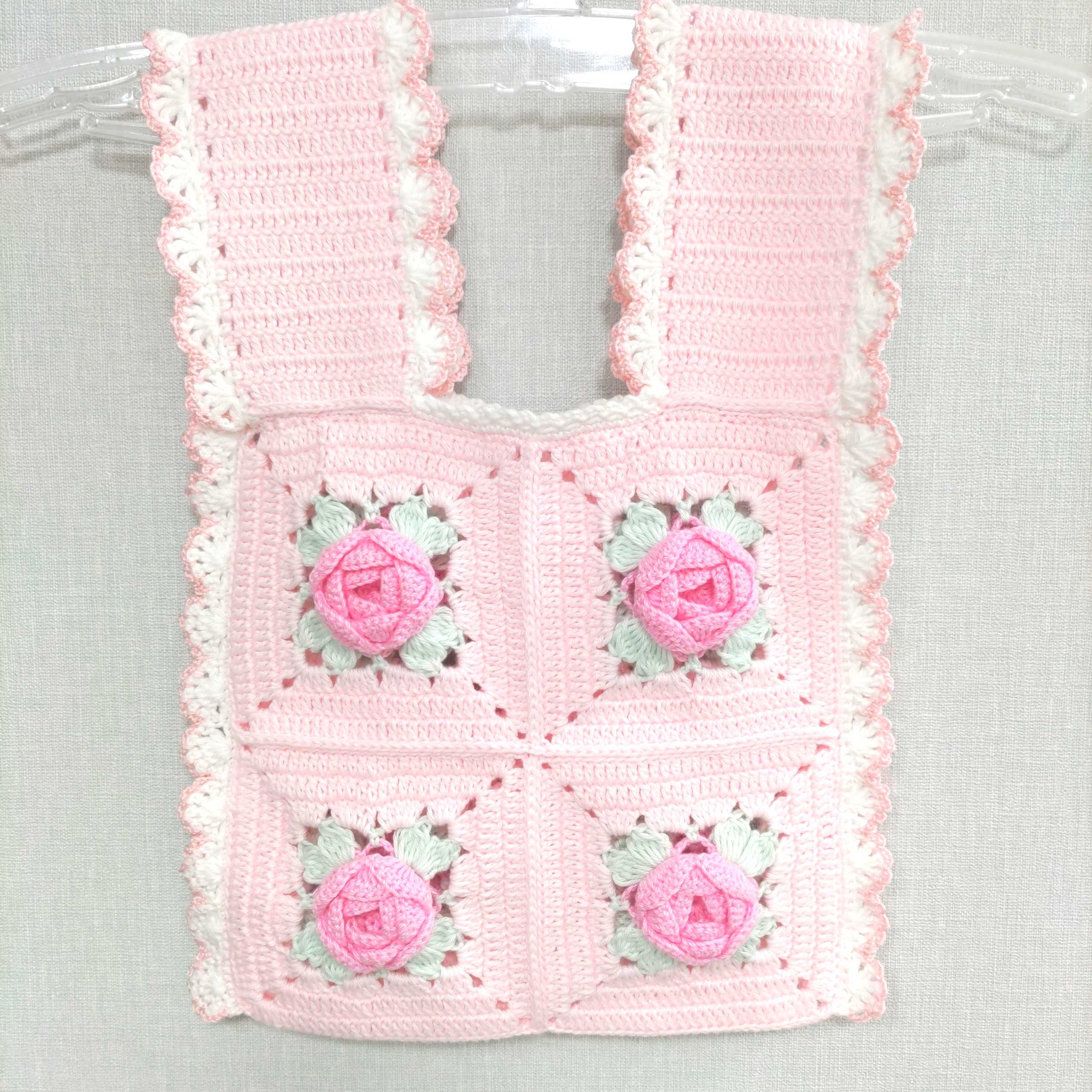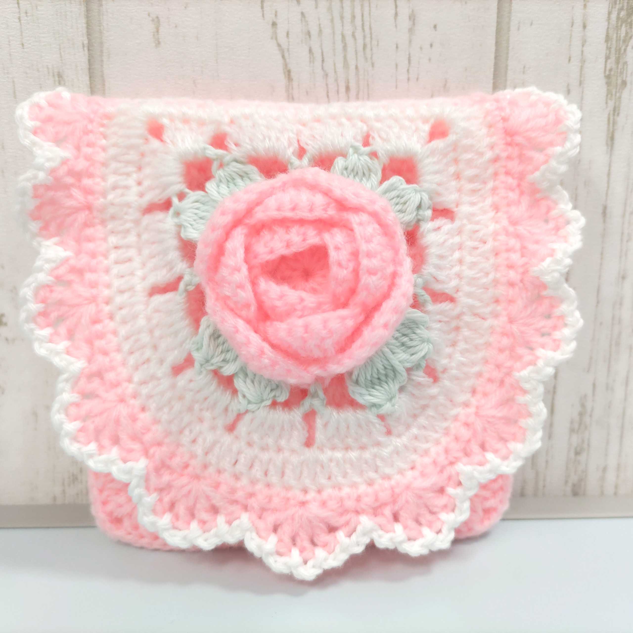 ベビーピンクの薔薇の巾着編みました♪