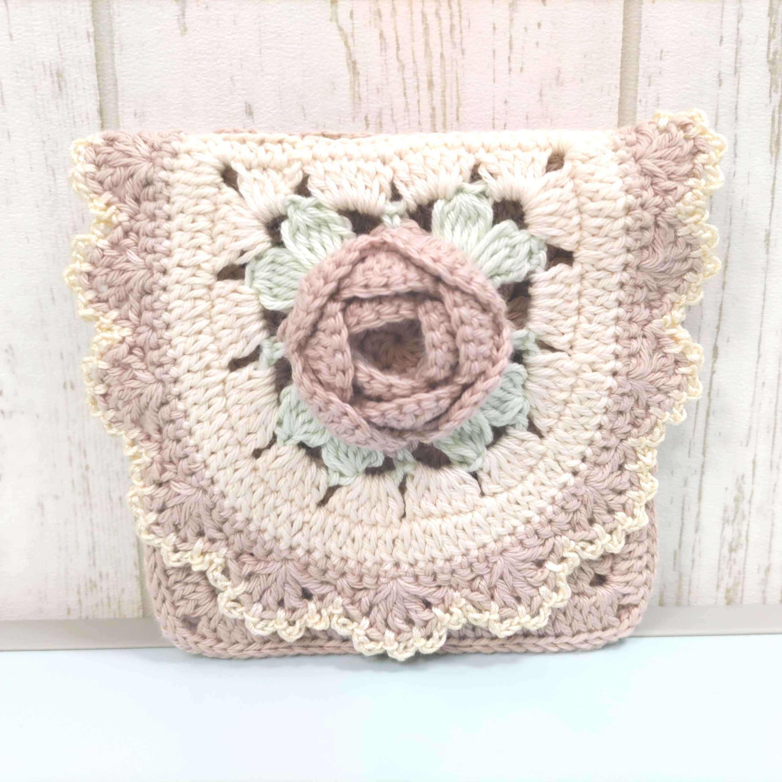 ピンクの薔薇のバッグを編みました♪