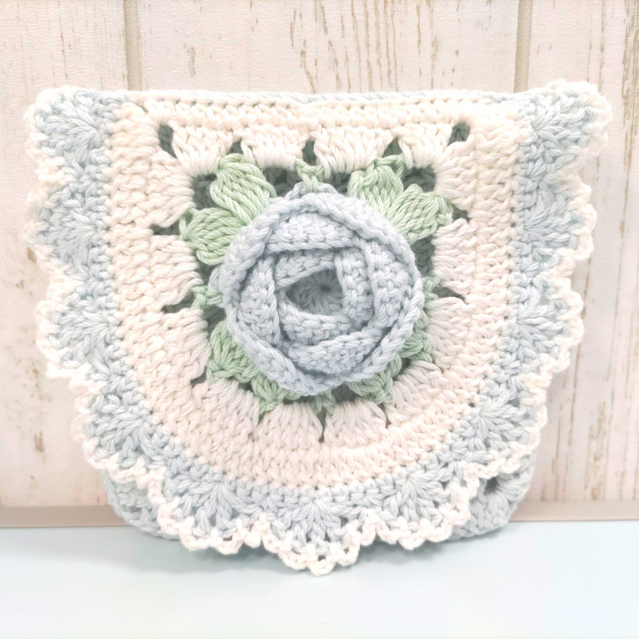 水色の薔薇のポーチ編みました♪
