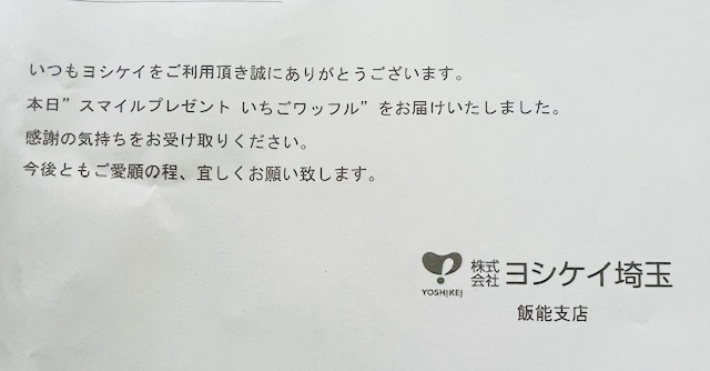 ヨシケイのスマイルプレゼント。マネキンのベルギーワッフル・いちご…