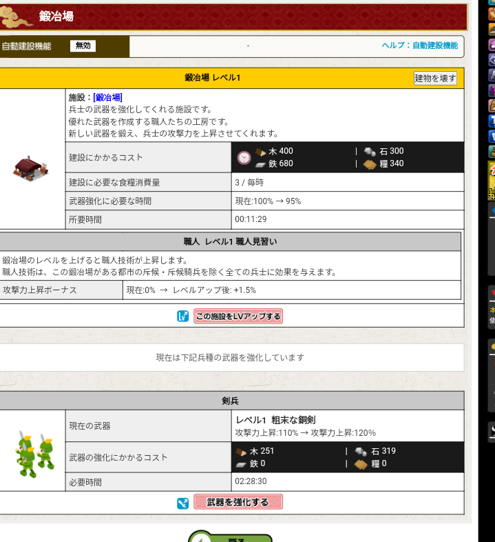 【ブラウザ三国志】兵器修練レベルアップ進捗