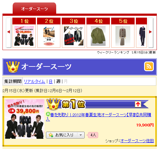 楽天オーダースーツランキングで1位に輝きました!!