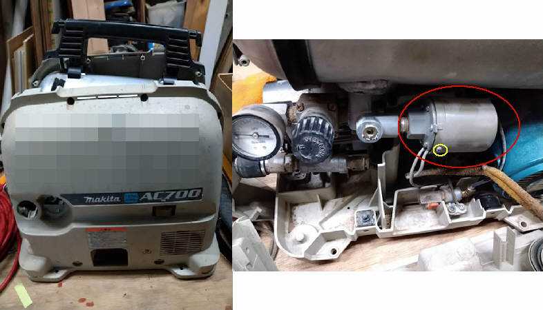 makitaのエアーコンプレッサーAC700をなんちゃって修理未完
