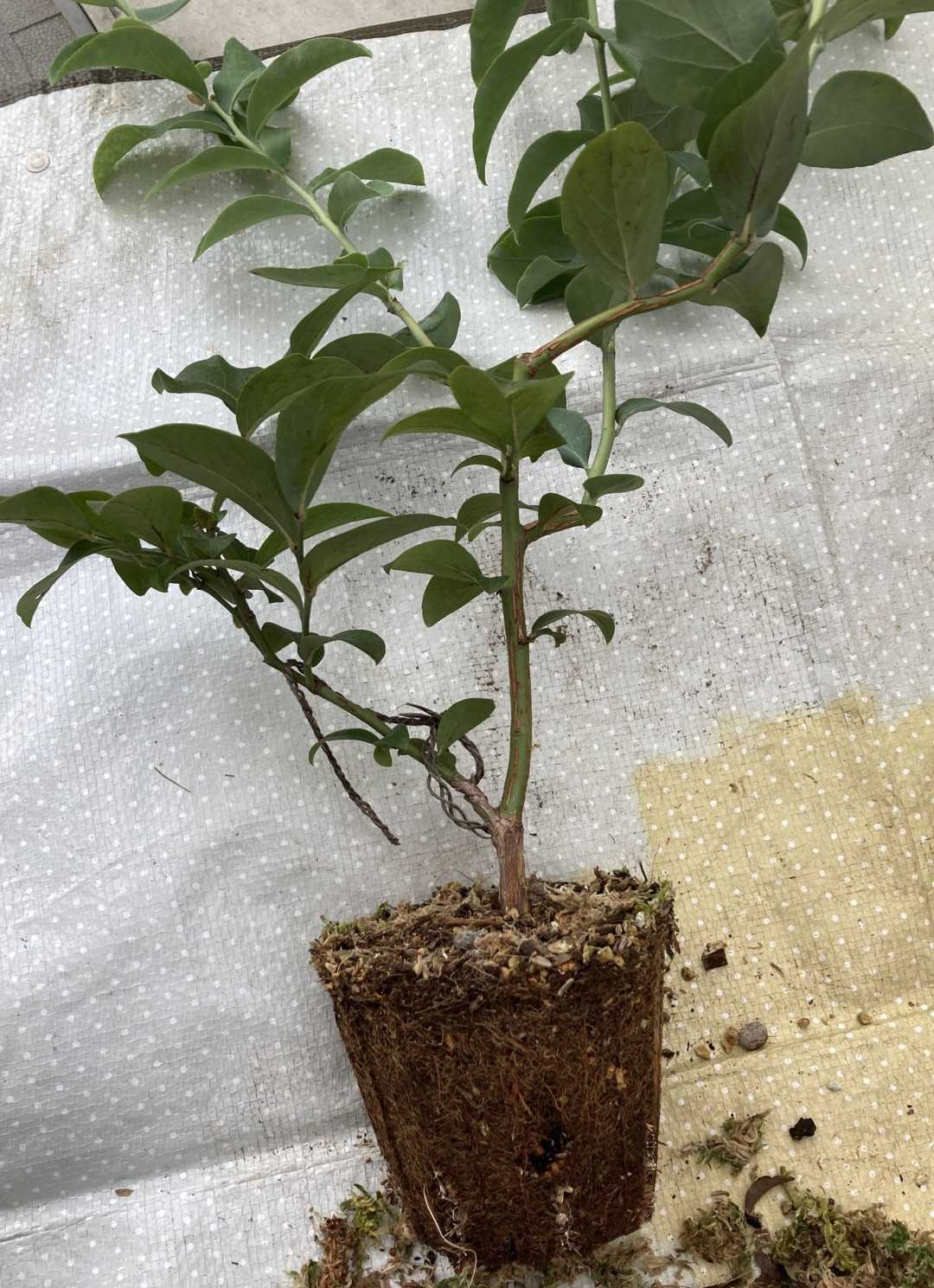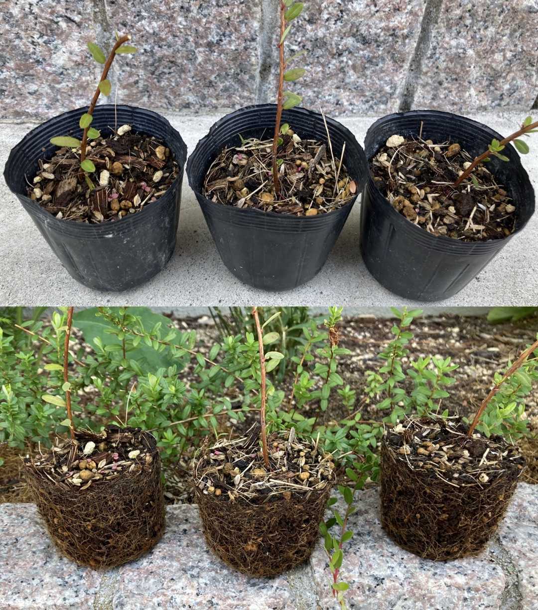 挿木ブルーベリーとフィンガーライム、カラタチ実生鉢増し