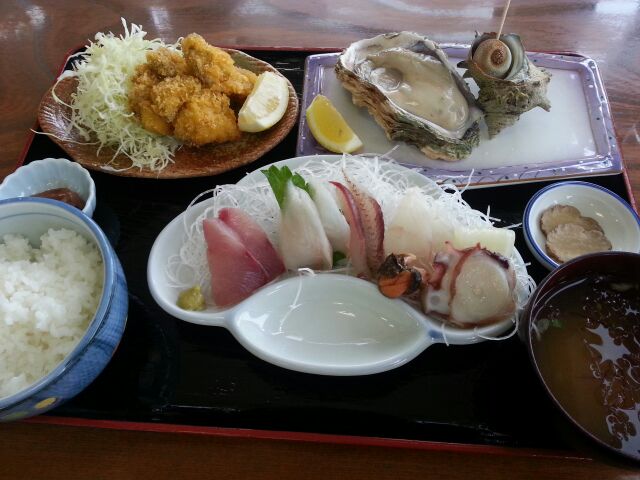 どうしても食べたい~~!日曜日、雨の中これを食べるだけに男鹿まで行ってきましたよ(笑)。曇りのち雨ですが、雨が降る前のジトッとに蒸し暑い中、BMWに乗る気になれず、アテンザで行ってきました。面目ない…(汗) ところが…。 喜び勇んで店に入り、席に座って目にしたメニューには、 意味不明な大きなバッテンが…(汗)「えっ、何?」 すかさず隣の席の人のテーブルを見る!?「あぁ~、食べてるやん!」 「何…?????(汗)」 話を聞くと、今年は不漁だそうで…。 6月は、まったくダメだったそうな。牡蠣フライが食べたい場合は、雄和丸定食2500円を選んでもらいたいとのことでした。迷う間もなくチョイス! 残り最後の2個の定食をギリギリのタイミングでオーダーできて、ありつけたのでした。例年に比べ小ぶり、生牡蠣は、ミルクのところが少ない…。 フライは、外サクッと中トロ~り感が少ない…。いやいや、ありつけただけでも、御の字としなくちゃ(笑) 6月にBMWで来ても、ありつけ無かったんですね。 良かった、良かった。「さわらび」の女子2人旅の料理の足元にも及びませんが…(笑)