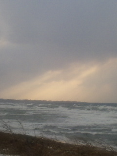 風で車が揺れてます~。そのわりに、海は大して荒れてません。