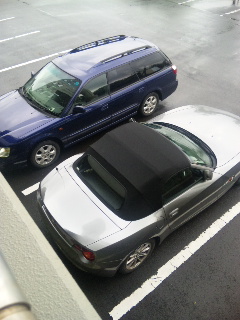 広い駐車場に車が、3台。隣に留めなきゃ、いけないもんかね!