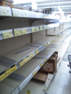 カップラーメン無し、食品不足。一人10品制限。長蛇の列…。