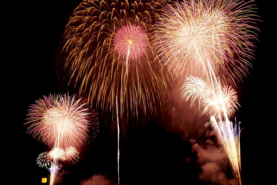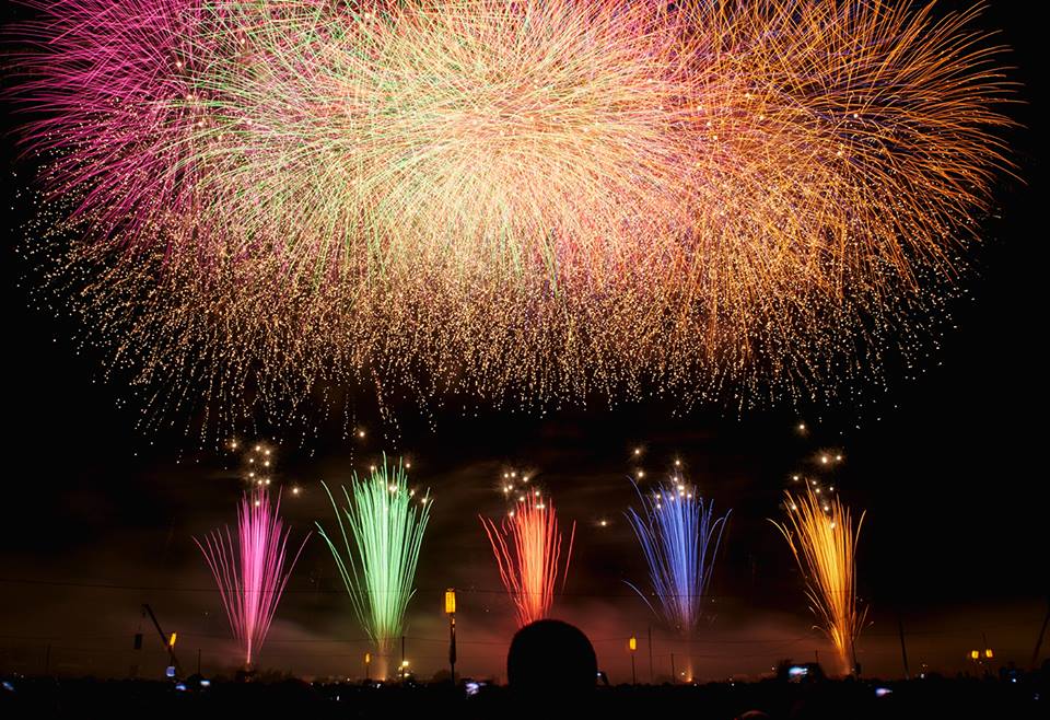 6時50分、オープニングのナイアガラからの打ち上げ~~。歓声が上がりました~(笑)