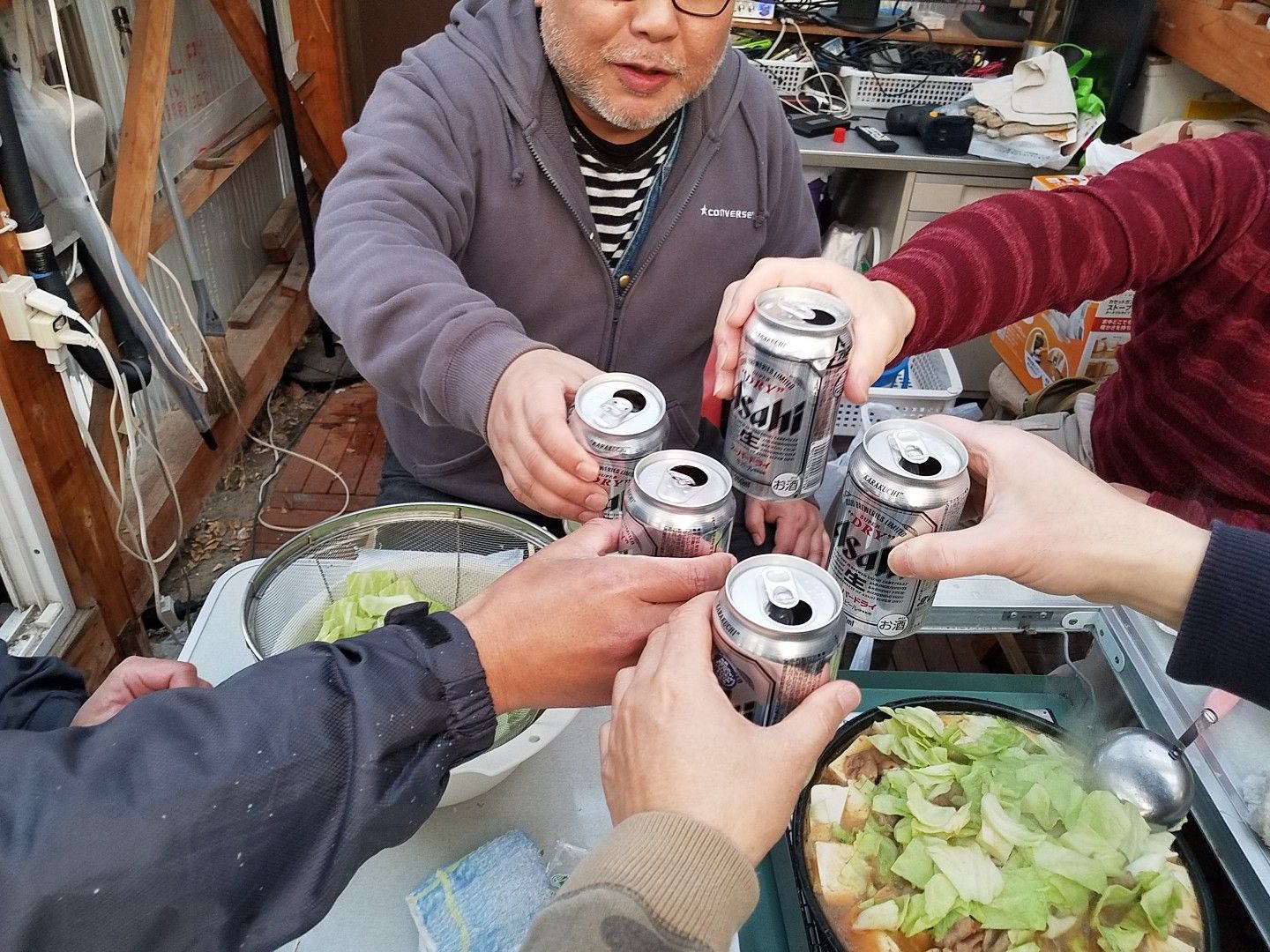 鍋は2回目。3人分を2回に分けて作ります。あはは、間に合いました(笑)。良かった、良かった。