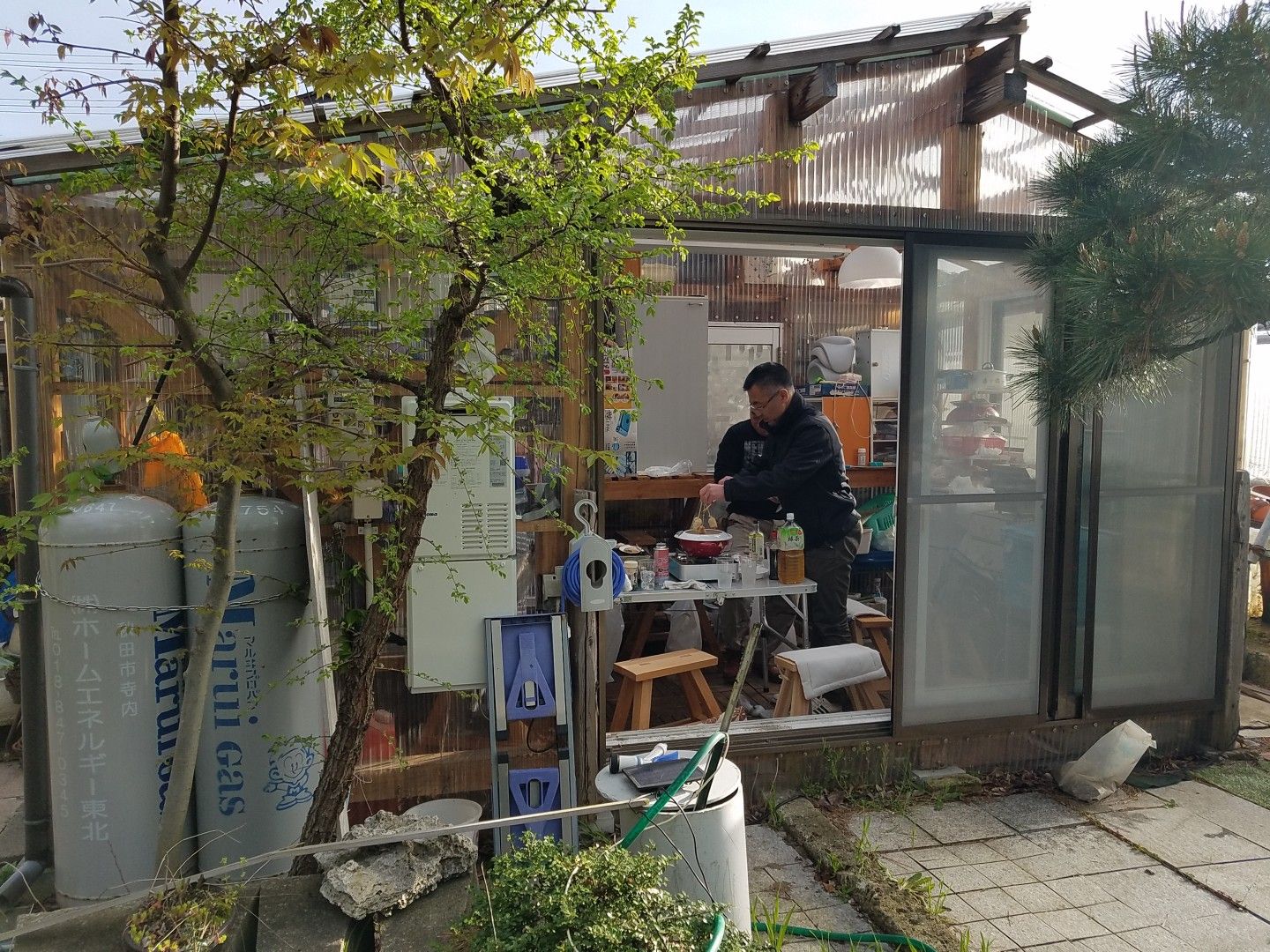 丈夫なオヤジだとテーブルが小さく見えます(笑)