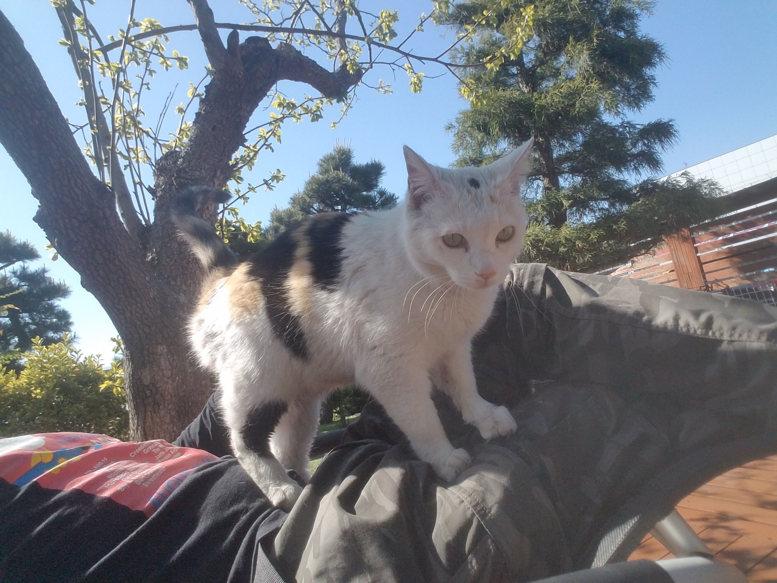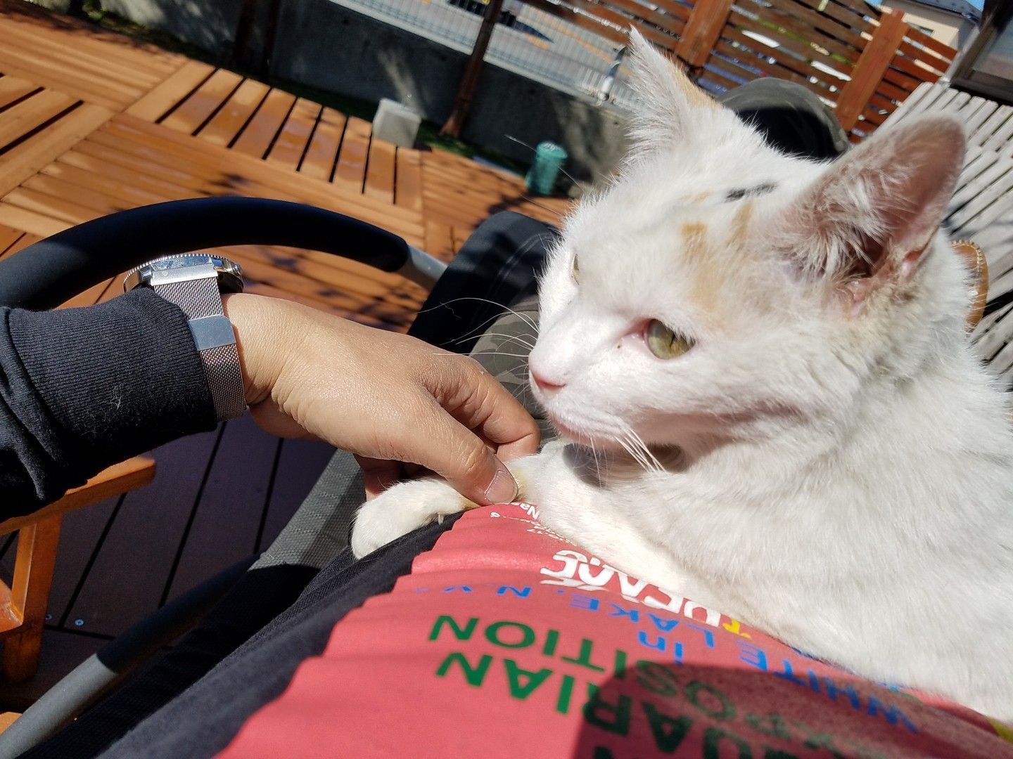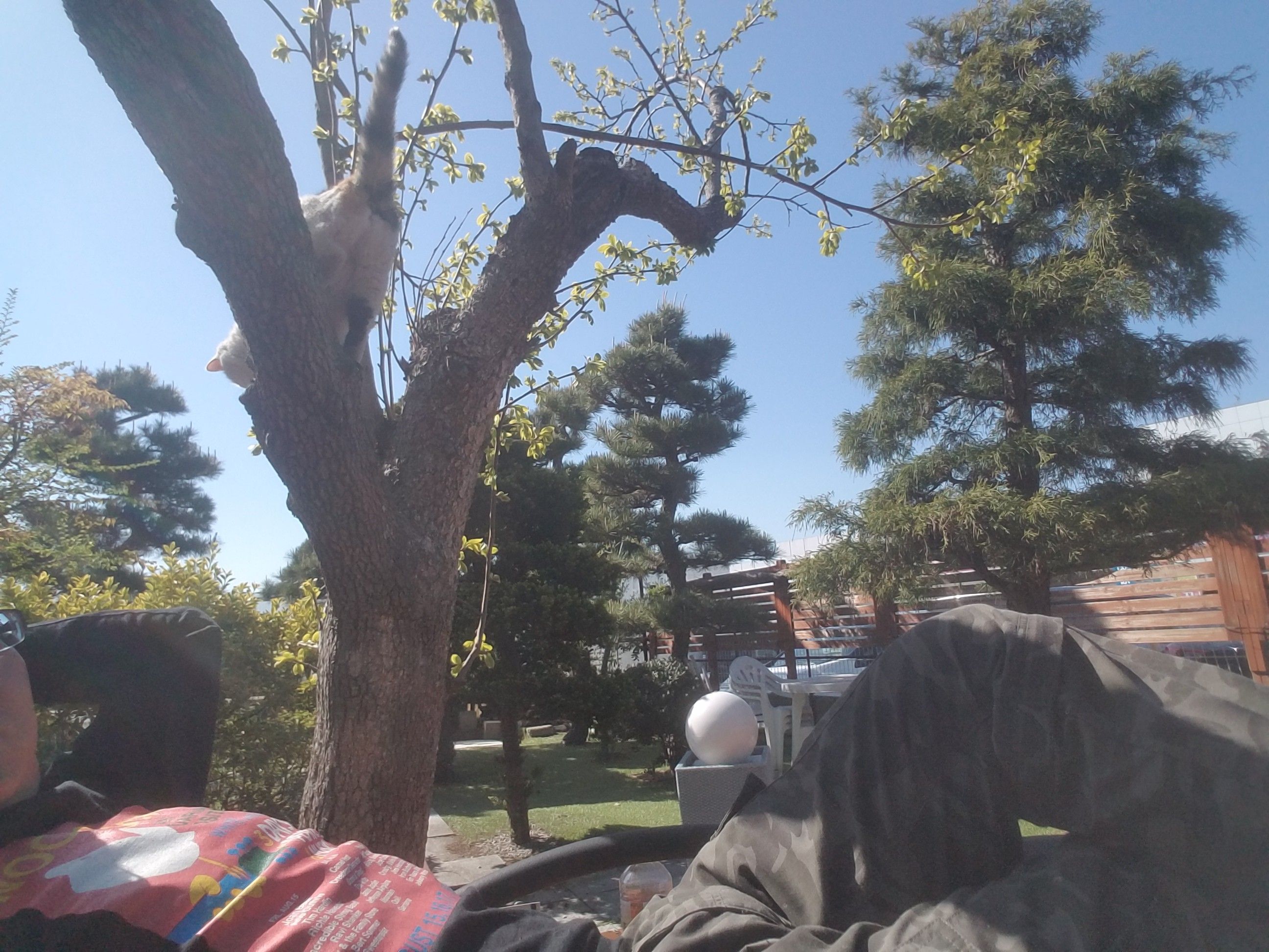 今日は暖かいですけど風がありますから…、ミケがいて丁度いい(笑)