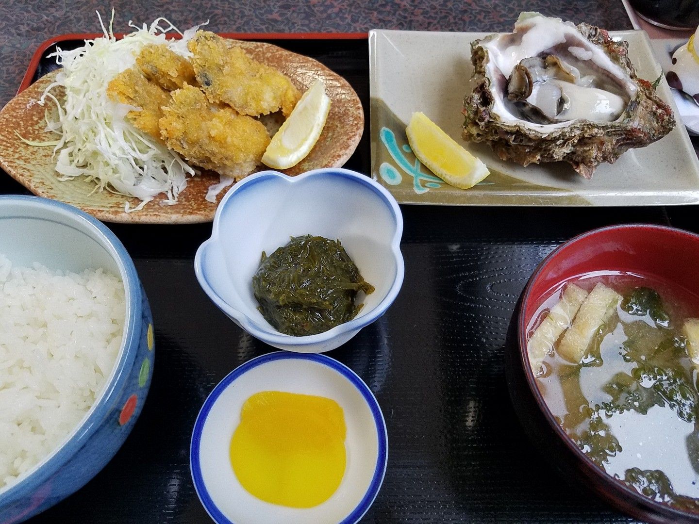 迷わず、岩がき定食。13時を回る遅いお昼でした。
