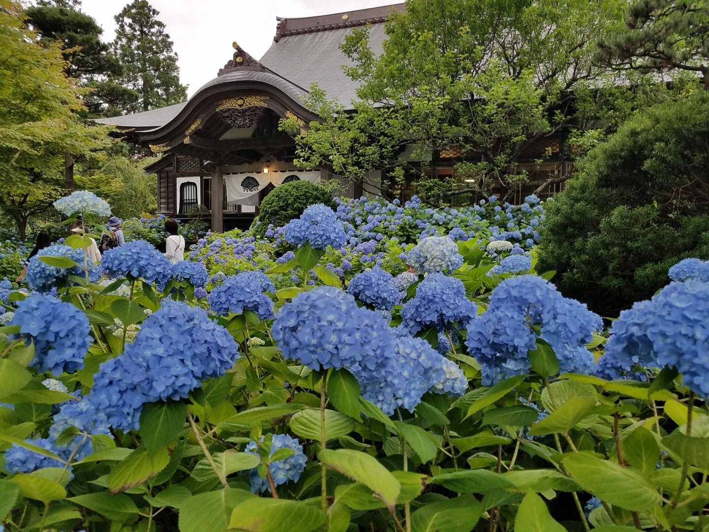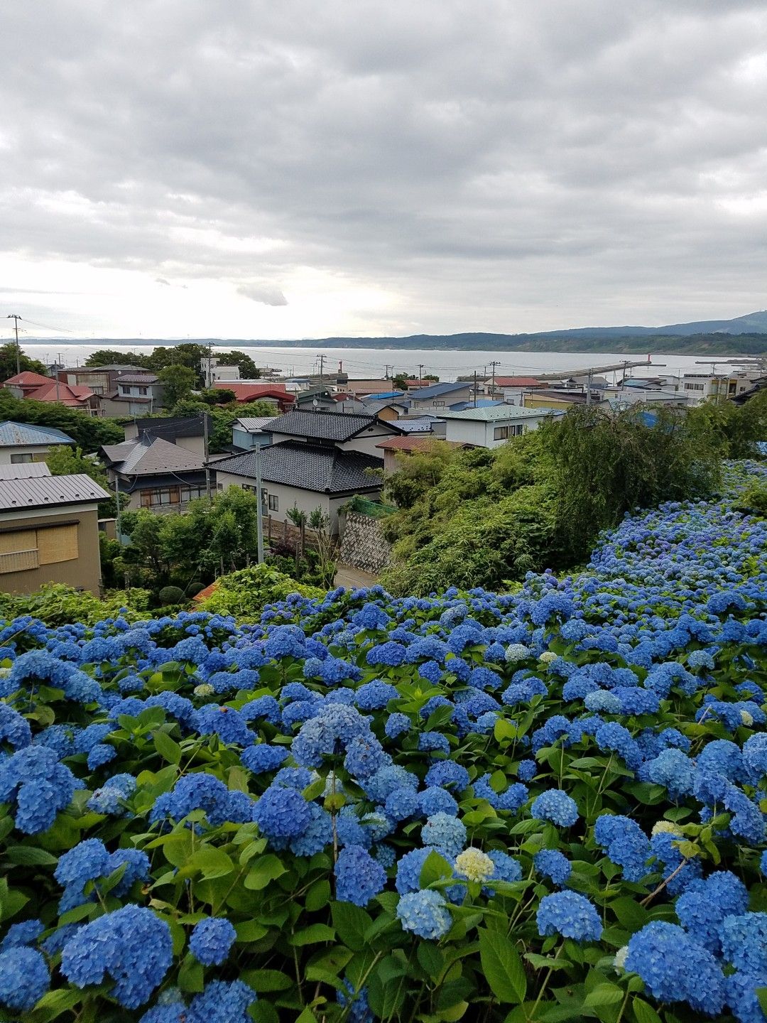 生憎の曇り空でしたが、天気がいいと紫陽花のブルー、海のブルー、空のブルーのコントラストが綺麗らしい。